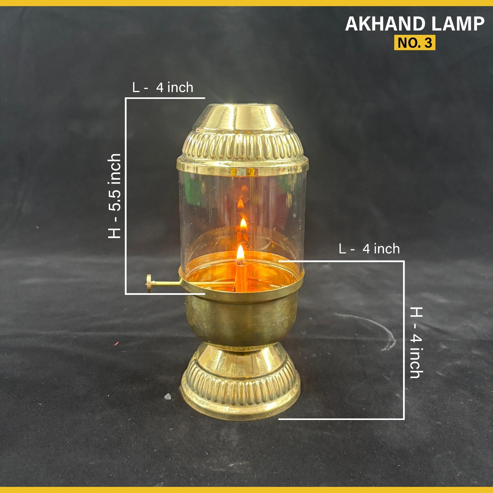 Brass Akhand Diya Oil Lamp Borosilicate Glass Cover & Adjustable Bati Knob. Premium Brass Diya – Crafted from durable brass diyas for pooja, ideal for long-lasting use. Adjustable Wick Lever – Features a wick lifting screw lever for easy flame height control without touching the flame. Steady Akhand Jyot – Designed for continuous burning, perfect as an akhand jyoti diya with screw lever during pooja and Ideal for daily prayers and festivals like Diwali, Navratri, or any religious occasion..